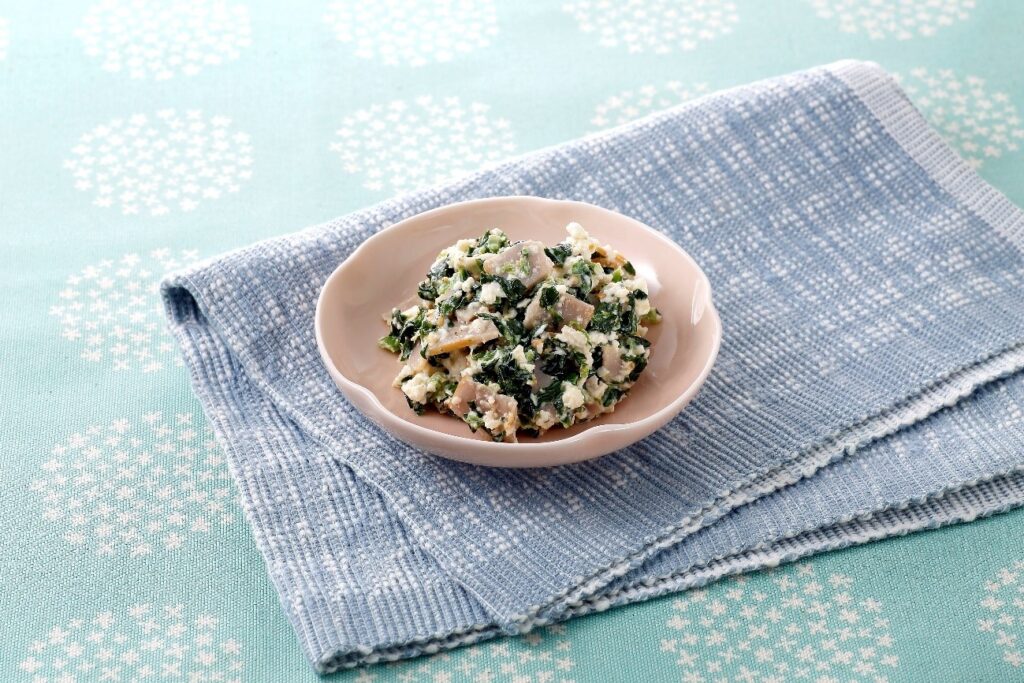 ベーコンとほうれん草の白和え