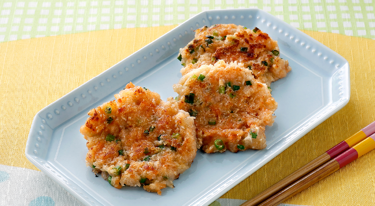 大根鮭もち 材料(2人分) 約25分 カルシウムたっぷり鮭フレーク・・・1/2瓶(25g) 大根・・・250g(水切り後120g) 小ねぎ・・・2本(小口切り) 顆粒片栗粉とろみちゃん・・・大さじ4 ごま油・・・大さじ2 作り方 大根は皮をむきすりおろして軽く水気を切り、ごま油以外の材料を混ぜ合わせる。 フライパンを熱し中火にしてごま油を入れて、①をスプーンですくい5cm位の大きさに広げて、両面をカリッときつね色に焼く。 キッズ #おかず #さかな おさかなコーン 油揚げの鮭ピザ 関連記事 キツネとうふ丼 2026年2月9日 鮭フレークと切り干し大根の中華サラダ 2026年1月28日 ウインナーおにぎり 2026年1月26日 いわしのふりかけときのこの和え物 2026年1月14日 ツナトマトうどん 2026年1月14日 ポトフ 2026年1月12日 ツナマヨごろっとポテト 2025年12月31日 ホイップクリームパン 2025年12月21日