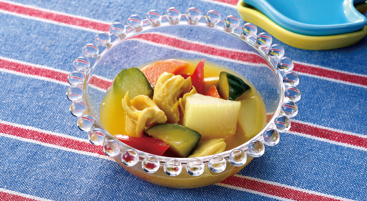 - ② 鍋に★を入れて中火にかけ、ひと煮立ちさせてカレーの王子さまを加えて混ぜ合わせに注ぐ。 粗熱が取れたら冷蔵庫に入れて2時間以上置き、味をなじませる。