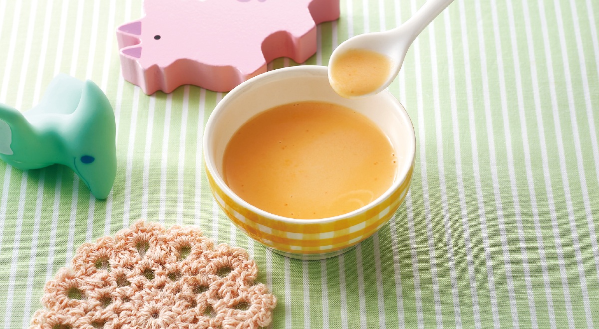 にんじんポタージュ 材料(1人分) 約15分 北海道のうらごしにんじん・・・1個(20g) 顆粒片栗粉とろみちゃん・・・少々 ミルク(調乳したもの)・・・50ml 作り方 小鍋にミルクとうらごしにんじんを加えて弱火にかけてふつふつとしてきたら、とろみちゃんを加える。 ごっくん期(6か月頃~) ♯うらごし ♯にんじん 鮭フレークと切り干し大根の中華サラダ 米粉のチョコバナナクレープ 関連記事 コーンときなこのおかゆ 2026年1月21日 ミックスポタージュ 2026年1月21日 かぼちゃとヨーグルトの重ねケーキ 2025年12月14日 さつまいものミルクパンかゆ 2025年12月3日 納豆とコーンのおかゆ 2025年10月23日 おばけなおかゆ 2025年9月21日 こまつなバナナスムージー 2025年7月11日 枝豆ヨーグルト 2025年6月1日