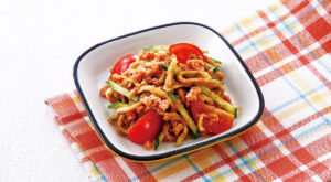 - 絹とうふはレンジでパッケージ通り解凍しておく。