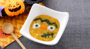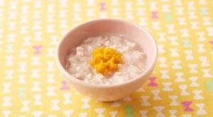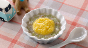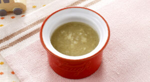- 鍋にうらごしにんじん、とりささみ、イブシギンのだし、水を入れて弱火にかけてふつふつしてきたら、とろみちゃんを加える。