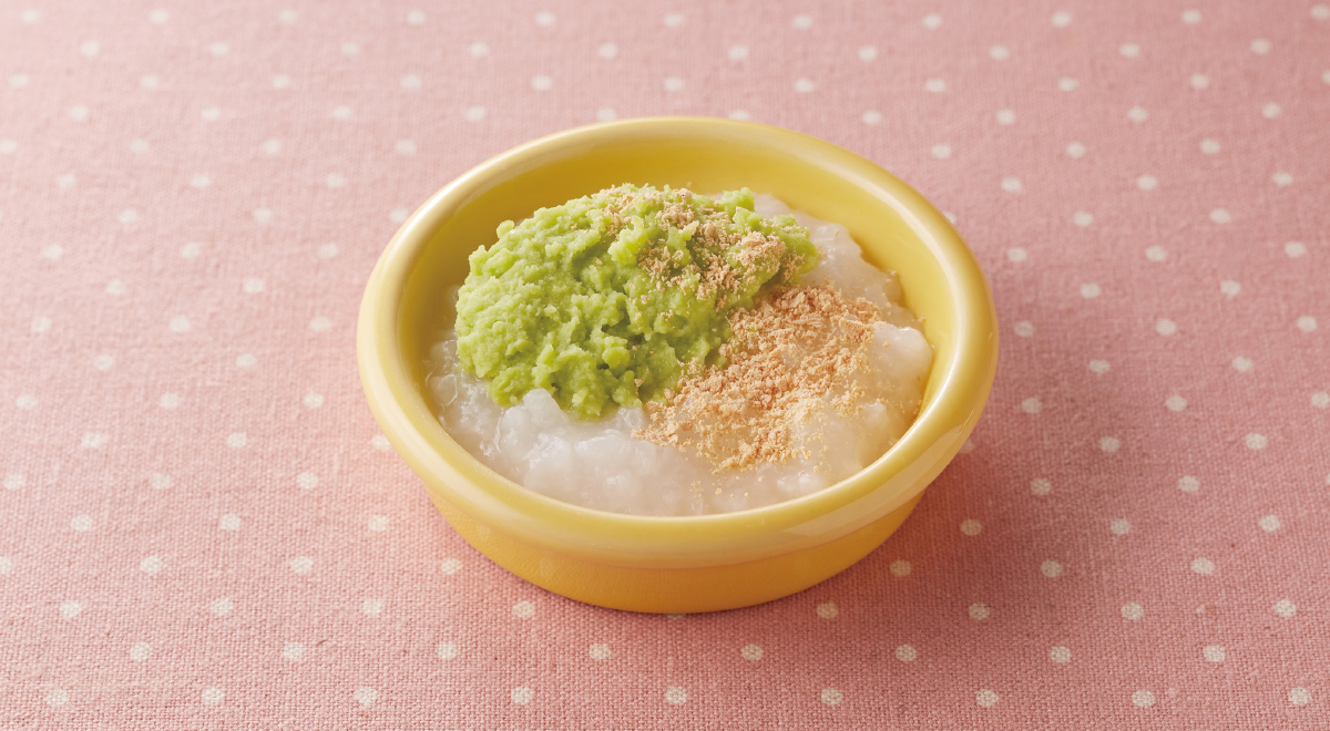 ③ ❶のおかゆに❷をのせてきな粉を振る。