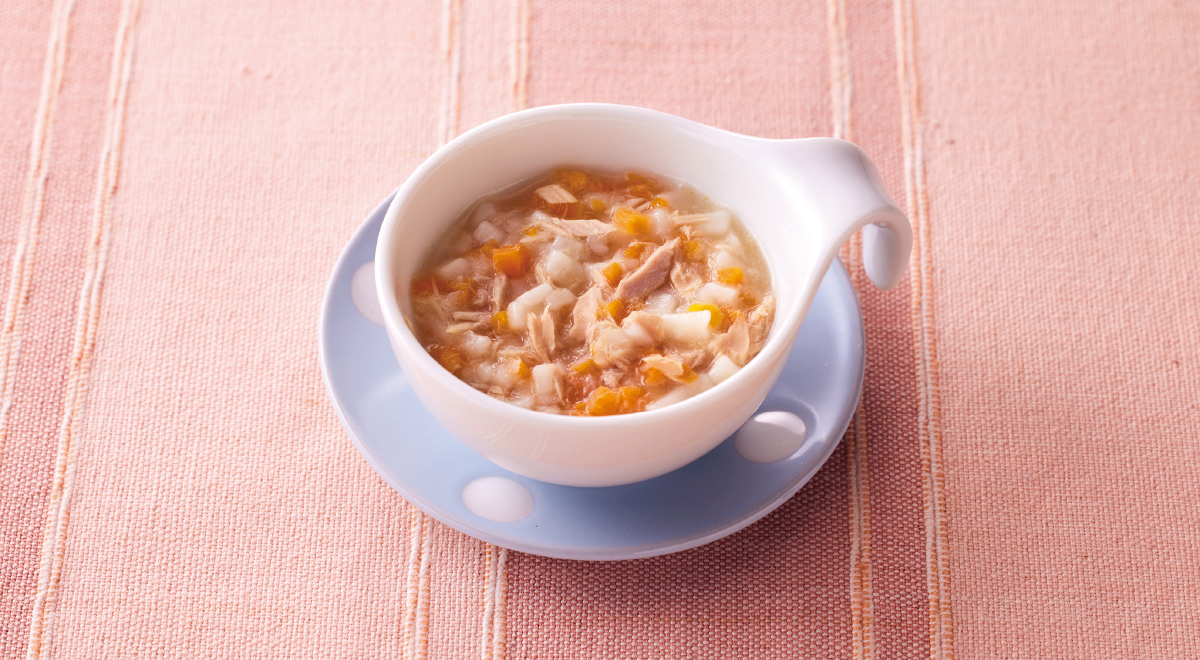 ※レンジは500W - 鍋にツナ・水・❶の材料を加えツナをほぐしながら、弱火でやわらかくなるまで煮て、