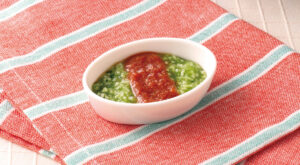 - ミックスベジタブルは裏面通りレンジ解凍して、細かくつぶす。